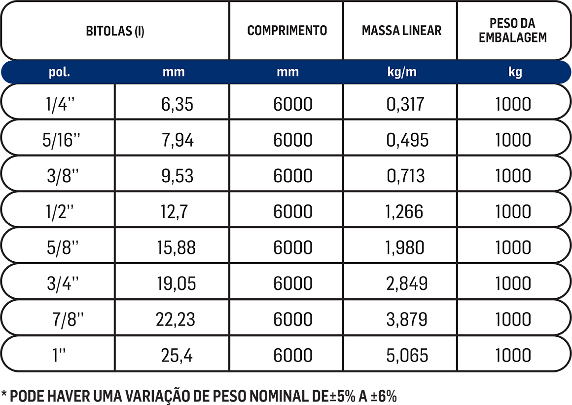 A Barra Quadrada é produzida com composição química controlada, soldável pelos métodos normais de fusão.