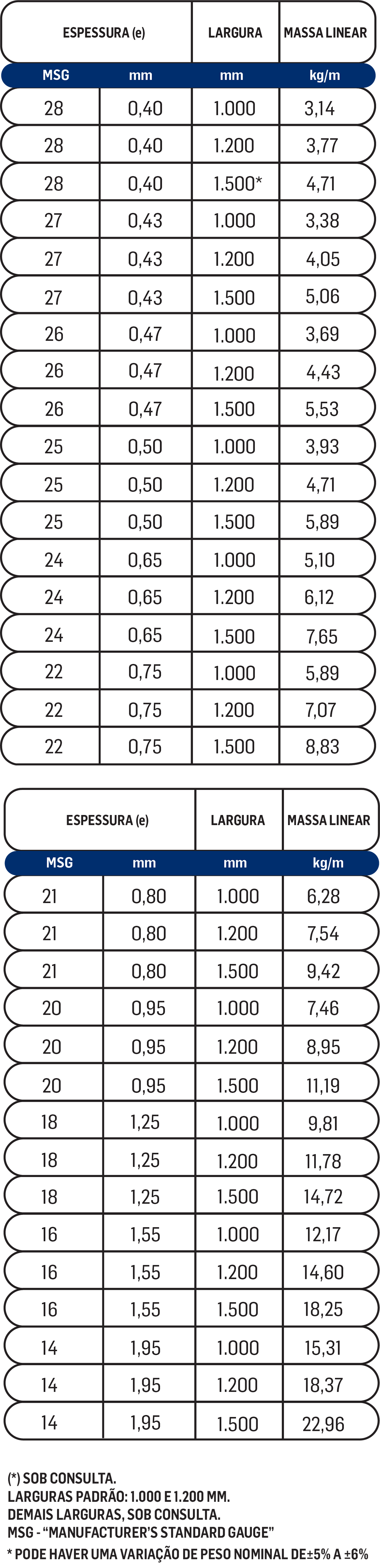 É fornecida em largura e comprimento padrão.