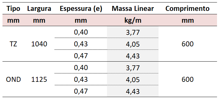 produzida nas mesmas formas (trapezoidal ou ondulada),