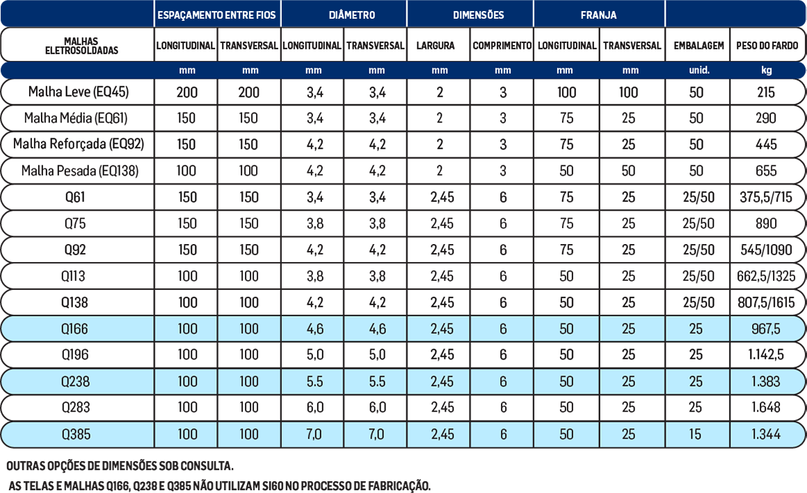 As Telas e Malhas de aço são utilizadas principalmente para construção de lajes em concreto armado, pisos industriais e estruturas pré-moldadas. Feitas com aço CA 60 nervurado, que proporciona maior aderência do aço ao concreto, as Telas e Malhas são sinônimos de qualidade, resistência e ganho de produtividade.