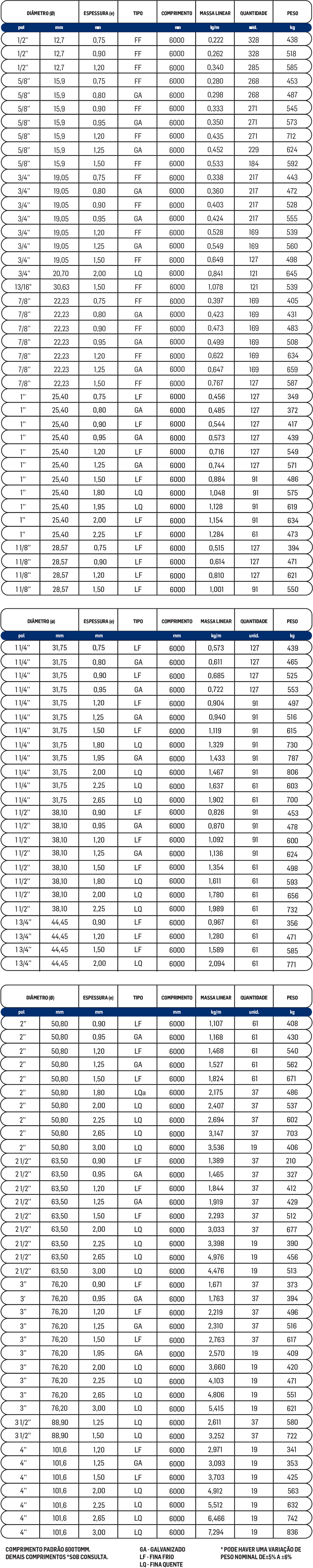 Laminado a quente, a frio ou galvanizado e soldado pelo processo de alta frequência (resistência elétrica-ERW), possui tolerância de fabricação baseada em normas nacionais.