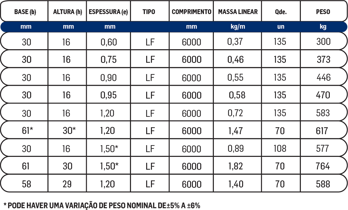 O Tubo Oblongo possui característica geométrica diferenciada.