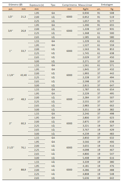 e seção redonda. É produzido a partir de bobinas de aço de baixo